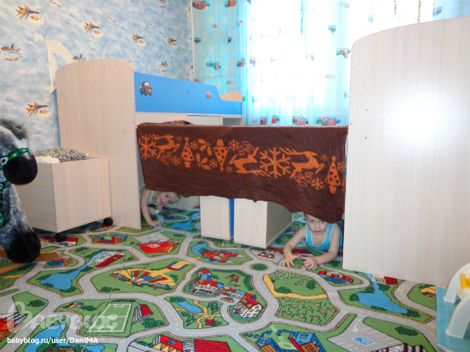 А если выдвинуть столы в кроватках, то можно сделать домики.