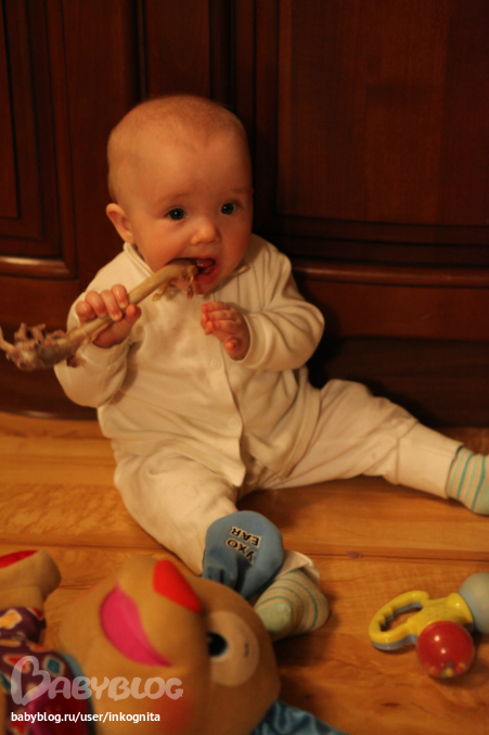 у Златы нижний правый прорезался окончательно еще левый никак не вылезет, Ладулик так же с одним зубом левым нижним, правый тоже все никак не вылезет хотя десна прорезалась, они вообще что то остановились и не растут больше чуть вылезли и все