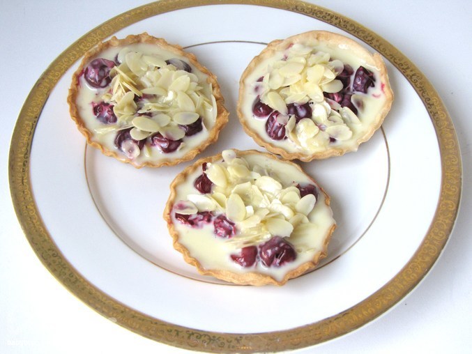 Это такой тарт с белым шоколадом.Я его сделала в виде пирожных,так эффектние,на мой взгляд.Еще из остатков таких конфеток сделала - ребенок был в восторге!