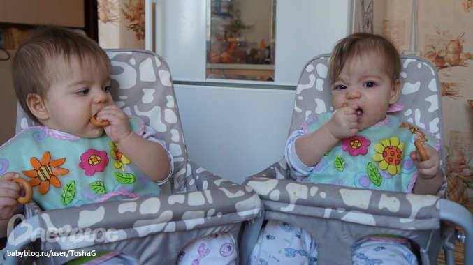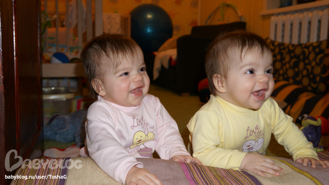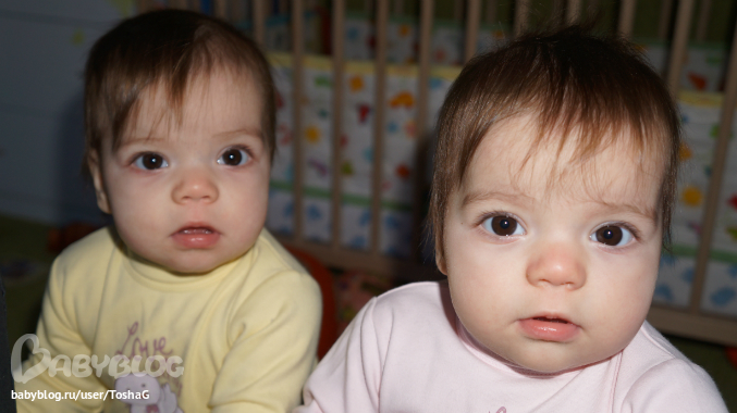 Двойняшки до 1 годаУ меня беременные 9 месяцев дольше - все таки в ожидании время тянется... А сейчас все быстрее и быстрее проносятся дни. Вот уже и девять месяцев со дня рождения. А я не успеваю за вами, мои девочки! Мне еще хочется носить вас на ручках, а вы уже переползаете всю квартиру вдоль и поперек, хочется надевать на вас ползунки и заворачивать в пеленки, а уже приходится покупать колготки и платья, мне бы хотелось еще кормить вас грудью, а вы от нее отказались и за обе щеки уминаете каши и пюре из картошки с мясом. Как, блин, реализовать этот материнский инстинкт, чтобы больше не хотелось?.. Видимо, никак... Сама я, наверное, больше не решусь... Придется ждать внуков...