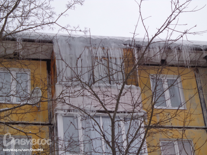 Пошли мы гулять, я деда и малепуськи, проходим мимо какого-то дома, и что я вижу :)))) Бедный балкон весь в сосульках.