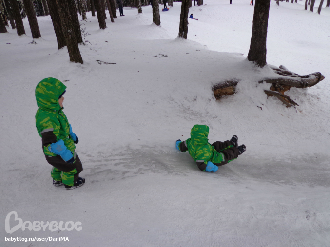 Мы только подошли и малявки тут же освоились и начали кататься по всякому с горки. Столько счастья у них было, столько смеха :))))