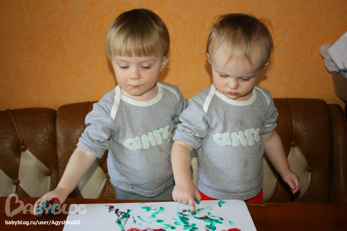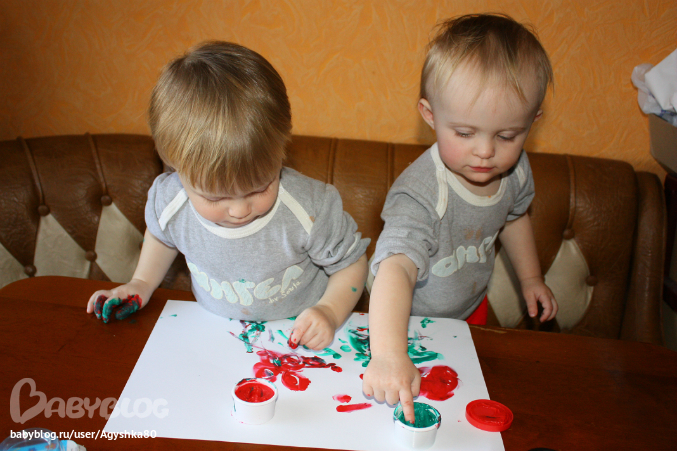 Рисование-мы уже рисуем карандашами и водными маркерами,палочками на улице по грязи и снегу,а вот пальчиковые попробовали впервые-рисовать понравилось-не понравилось маме это все потом отмывать,а детям мыться .....