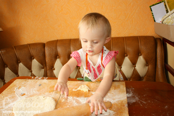 Ну а это любимое занятие дочери-сын как то остыл-немного тесто поковыряет и убегает,а Аня мнет,раскатывает,лепит...