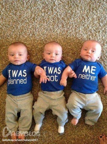 красавчики мальчишки, я когда беременна была фото двойняшек и тройняшек и даже четверняшек меня и мужа очень умиляли, он говорил как классно, ути пути))) когда родились девульки и мы на себе ощутили тяготы двойного счастья, фотками тройняшек и четверняшек я пугаю мужа))) у него теперь реакция такая , свят-свят- свят)))))))
