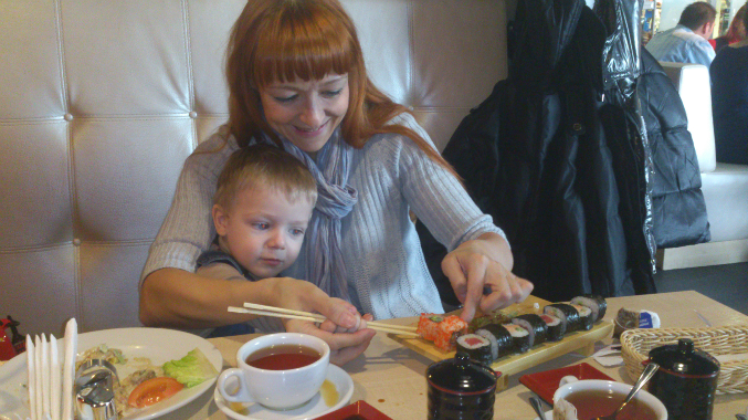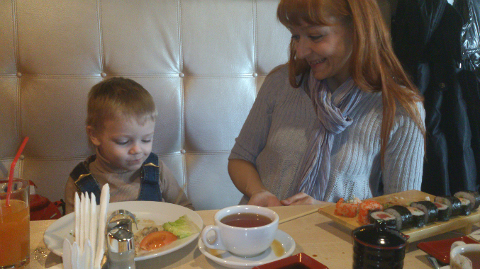 Причем детки уже закидывают удочку на суши,ну конечно мамин заказ кажется вкуснее чем их драники с колбаской))))(помните рассказ про собачку Соню и горчицу вот это тот случай)Ну зато риса поели,и главное дома им не вкусно,а тут в дварта кричат вкусно!!!!