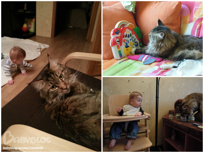 Ну и чуть не забыла про котэ :) пасет мелких, всегда с ними в одной комнате болтается, когда они не спят :) а если они едять то тем более, вдруг что обломится на остатках и еще научился включать музыкальную панель если дети проснулись а мама на кухне ))))))))