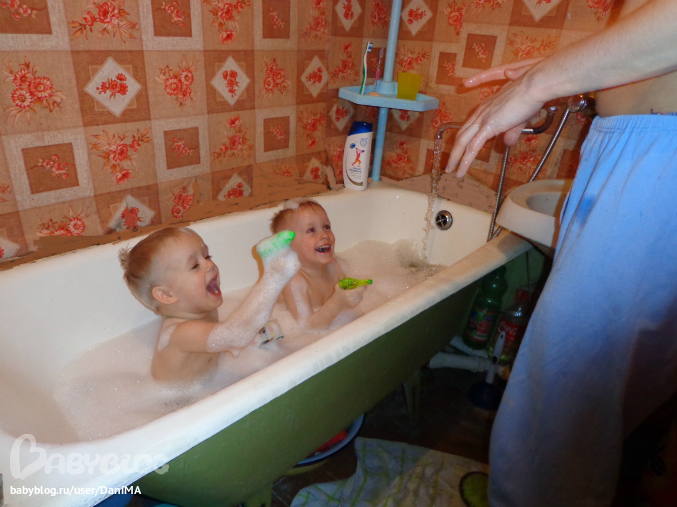 с папкой вначале веселее, он играет, а я обычно в ванну их посажу, сама на кухне че-нить делаю, а потом зато папа их не щадит, при мытье, а я уговариваю.