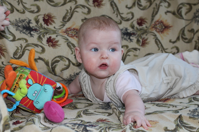 Леночка умеет перворачиваться и с живота на спинку, и наоборот со спинки на живот, так мы все времяи проводим, еще у нас постоянно кулаки во рту если нет значит палец, как буду отучать ее потом))) нуничего опыт уже есть, т.к пустышку совсем не признает. Ползает по пластунски причем как на животе назад так и на спине вперед, пытается встать уже на кулачки . и еще любит качатьсяиз стороны в сторону,держим игрушки , можем сами схватить их, очень любим купаться