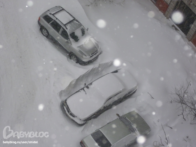 Сравните 2 последних фото .2 машины как их быстро занесло снегом.Вообще последние фото это то что происходит сейчас.