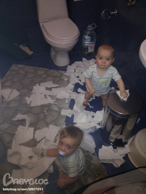 А это особая гордость, мои мальчики добрались до туалетной бумаги