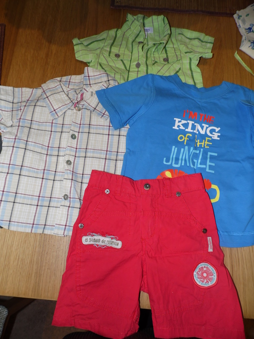 одежда на лето (2 рубаши размер 68,74 бриджи марикуита новые 68, футболка мазекея 12 мес) 700 руб