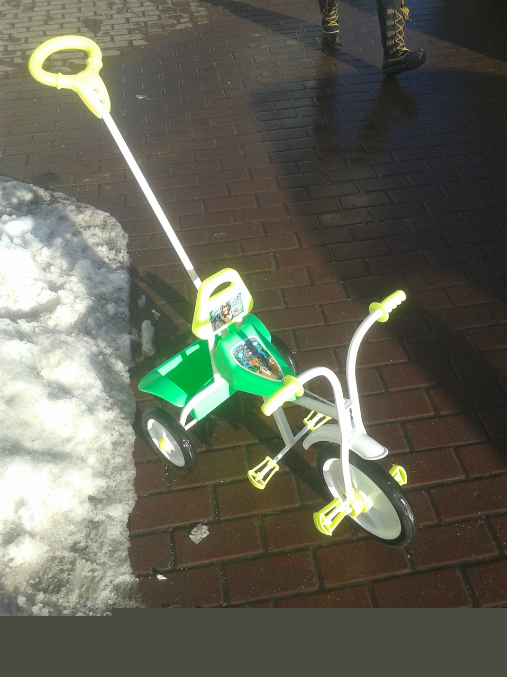 Пришла на днях велики. Папик собрал. Парни отказались устанавливать передний щиток с гудком. Ну и ладно, потом ещё попробуем прилепить.