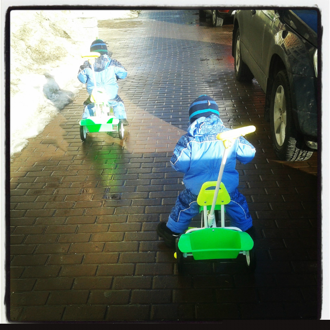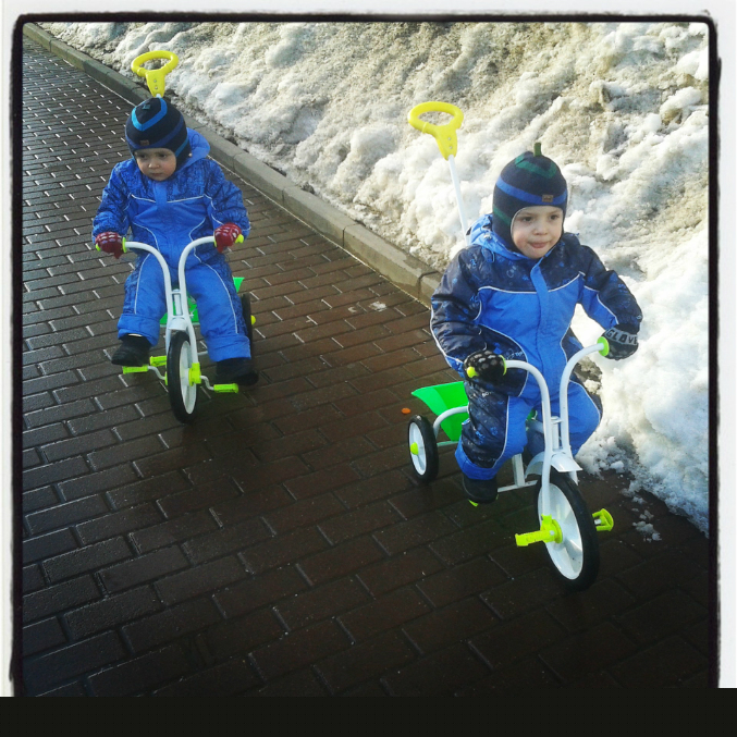Здорово! Поздравляем! У них прям крутить педали получается? Я в том году своему подобный покупала в 1,5 года. Летом катались, но до педалей не доставали ноги и катила всё время я)))