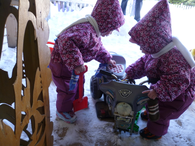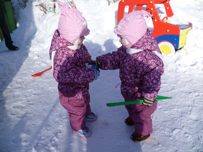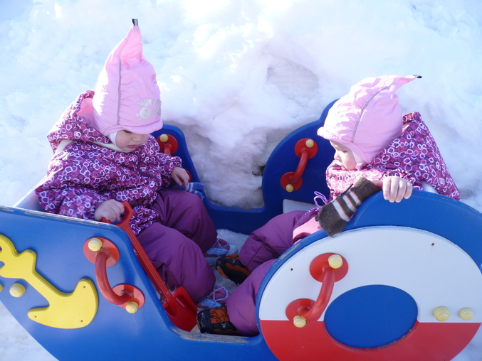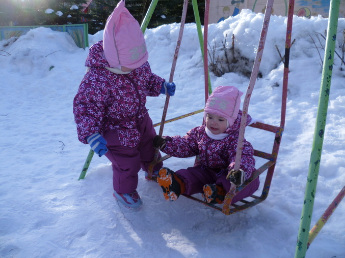 Но!!!Позавчера посадили своих в коляску,чтоб доехать до мест выгула,а коляска не едет,каши по колено,санки тоже неактуальны-проталины кругом.Встали с коляски пошли пешком....А вчера сразу пошли пешком))))В близлежащий детский сад,до него минуты 2 пешком,с девочками за ручку 10)))))))И наконец-то одели демисезон,а то думала с зимних комбезов сразу в шорты.