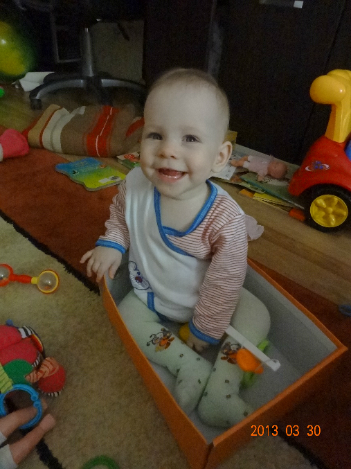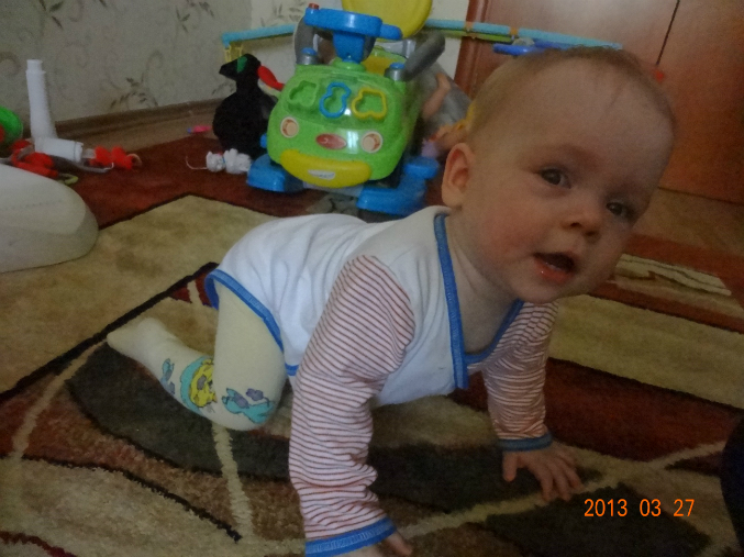 Это очень большой прогресс! Здорово! Поздравляю от души! У меня один сынок в этом возрасте тоже только начал на четвереньках чуть-чуть ползать и сидеть с подогнутыми под попу ножками (с выпрямленными не мог до 1.2).