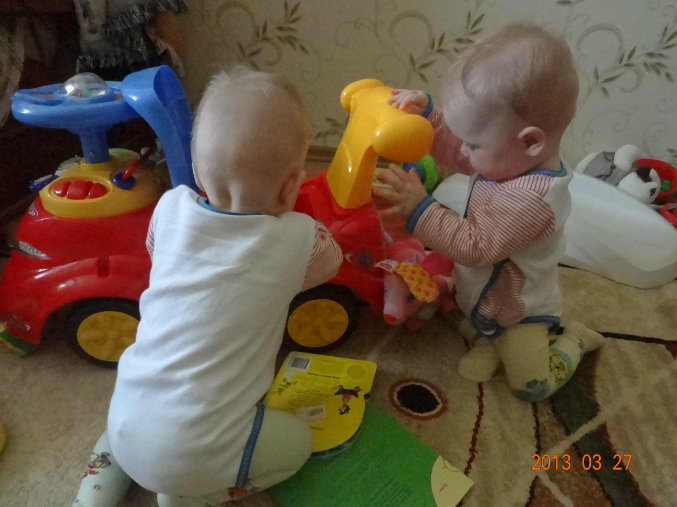 Двойняшки от 1 года до 3-хВероничка решила порадовать)) Неделю назад она встала на четвереньки, вчера начала по чуть-чуть ползать, пока неуверенно и не быстро и на короткие расстояния, но это не важно, это для нас большой прогресс!!)) через несколько дней снова в больницу, но уже я думаю в последний раз, я думаю массажи и физио должны закрепить результат, и, надеюсь, она встанет в скором времени и будем думать уже о хотьбе.)))