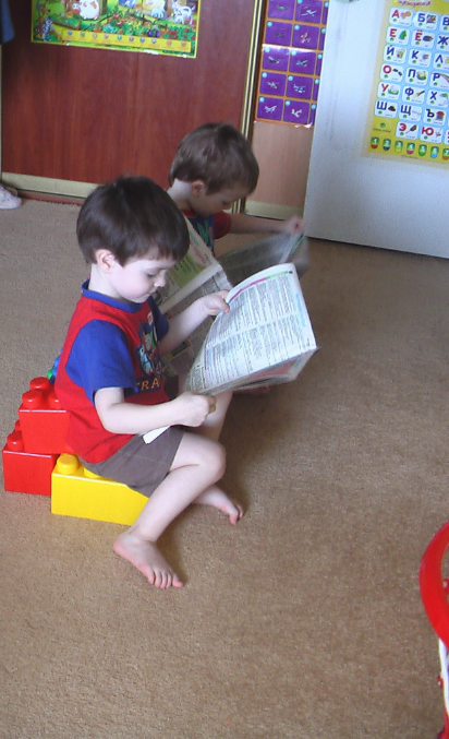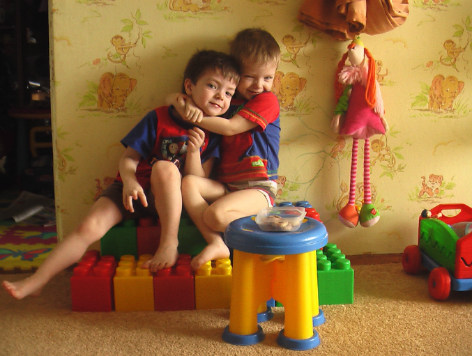 Марин кто что говорит про похожесть.Но мое личное мнение.Ефимка становится похож на меня в детстве,раньше мне казалось что он вылитый папа.Ну и если по родне смотреть то Ефимка все таки больше в Сашкину родню,а Мишка в мою родню в частности на сестру похож.Обниматься стали где то месяца 3 назад.А сейчас еще и говорят что люблю братика,мой любимый братик,мой Миша,Ефим.Я стараюсь заострить внимание на любви к брату.И всячески это поддерживаю.Так что твои тоже будут обниматься)