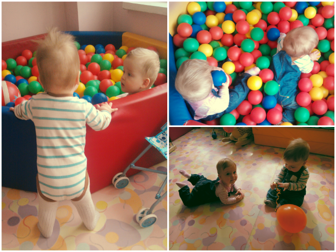 Особенно детям по душе пришелся сухой бассейн, там они готовы сидеть долго - ведь времени нужно очень много на то, чтобы попробовать на зуб все мячики :)