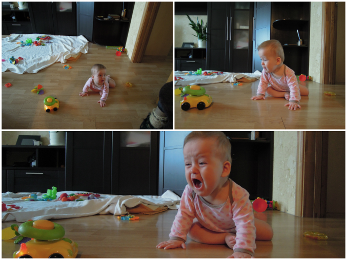 Юлич на 11-м месяце таки научилась нормально ползать но у нее пока это получается менее шустро чем у дрона, но она старается, хотя по началу ее лень все равно побеждала и она напрочь отказывалась даже один ползок сделать в сторону нужной игрушки и пыталась ее приманить силой крика :)