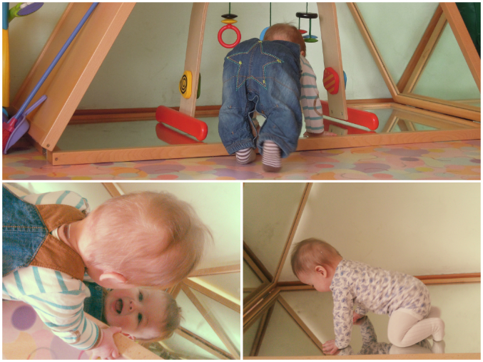 Дрон до сих пор неравнодушен к зеркальному уголку, причем кроме него это вообще никому неинтересно, остальные дети не прониклись... а он готов там сидеть вечно и разговаривать со всеми своими многочисленными отражениями :)