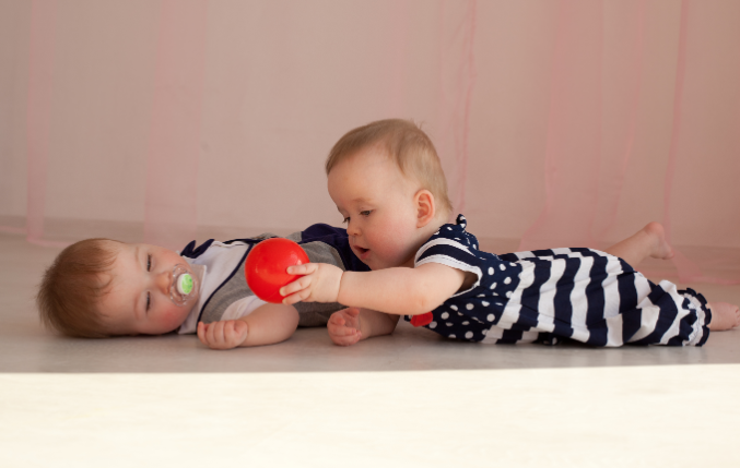 Не смотря на Юлину лень она все равно любит ползать за братом-исследователем, вдруг чего интересного обломится :))) очень часто играют вместе, хотя бывают моменты, когда им одной игрушки на двоих не просто мало, а мало-мало :)