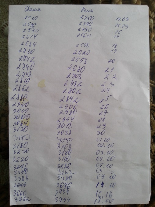 Родились мы 31.08. Вот, начала взвешивать и вести табличку как исполнилось 2 недели. Взвешивала всегда в одно и то же время. Наш педиатр сказала, что норма в сутки плюс 23 г. Как сил ребятишки набрались, так уже прибавляли по 1200г в месяц