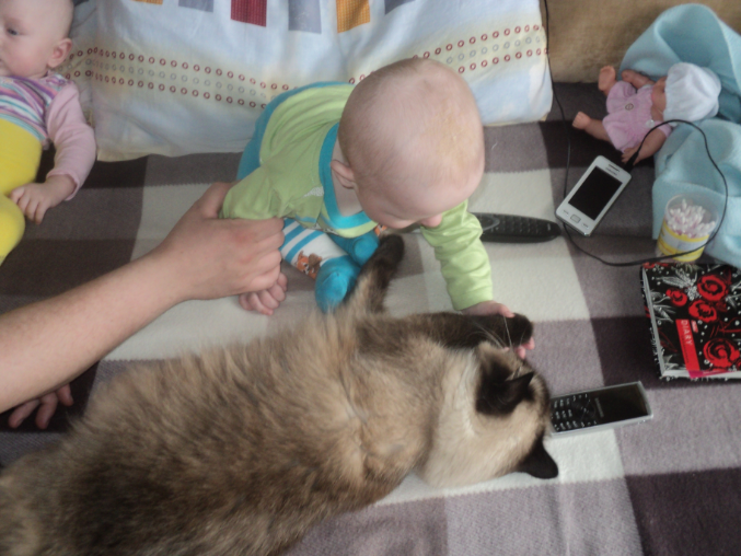 Наша кошка сходит сума особенно от Варварки как они ее увидят так у нас такой писк стоит,в ушах звенит,ну а если она попадется в руки то это капец просто!!!