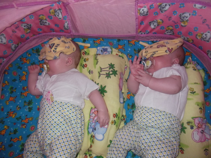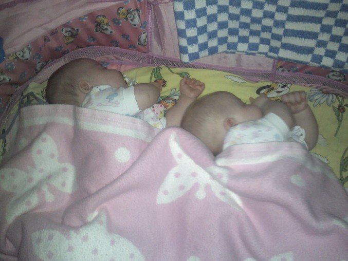 Интересно,что повлияло на это.Старшая дочка капризуля еще та,я думала она до 3л будет только на руках засыпать.Но стоило мне их положить вместе-на нашу 2хспальную кравать,ну естественно погладить по лысенькой головке(да,неделю назад мы сменили прическу,чему я очень рада,т.к.деткам сейчас не жарко),спеть любимые и давно знакомые песенки,плюс бутыли с компотом и 15-20мин и мирно спящие дети радуют родительский глаз!Может действительно нельзя разлучать двойнях во время сна!?Они до 4-5м спали вместе,а после пошли зубы и одну мы забрали себе в постель.Я тут недавно заметила,как Машенька ложится рядом,прямо попа к попе с Анечкой