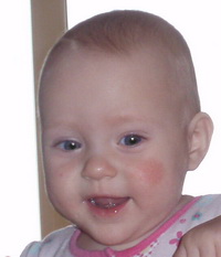 Похожее пятно у нас появилось на щеке в 7 месяцев. Сначало просто было похоже на раздражение, потом стало овальное, чётко очерченное , розооватое, иногда светлело. Шершавое, иногда даже типа перхоти на нём появлялось, действительно чем то похожее на лишай. Участковый педиатр не понял что это, направил к дерматологу и хирургу. Эти специалисты ничего своего не нашли. Решили, что это что-то аллергическое. Мы так и не разобрались, на что была аллергия, пищевая она, либо контактная. Пятно не увеличивалось, не чесалось, ребёнка не беспокоило. Но продержалось оно у нас, ни много ни мало месяцев 5. Но даже сейчас, когда его совершенно не видно, на солнце, под определённым углом я вижу его очертания. Вот, фото в 7 месяцев, пятно на щеке явно заметно.