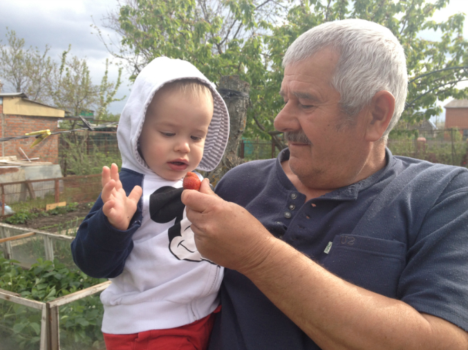 Поели клубнички, побегали по травке, мячик попинали. Дочка даже в бане успела попариться.