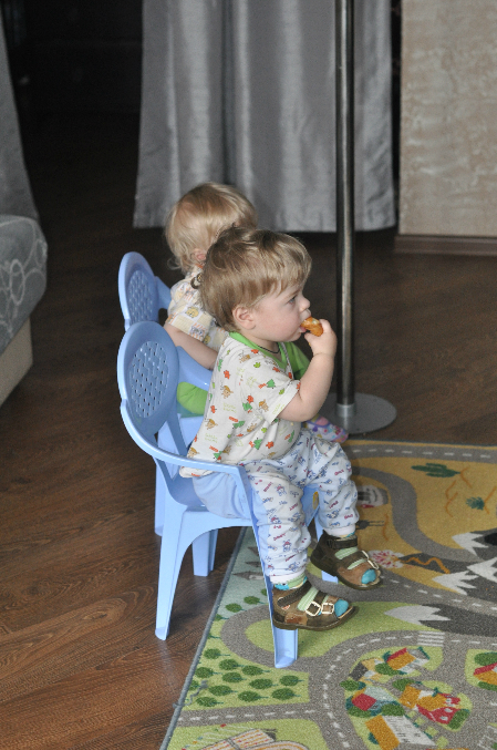 простите что вмешиваюсь, но судя по фото детки ножками до пола НЕ достают. т.е. стульчики им великоваты. Ножки должны обязательно стоять на опоре, для формирования правильной осанки спины. нам ортопед это объяснял когда мы с сыном к нему приходили.
