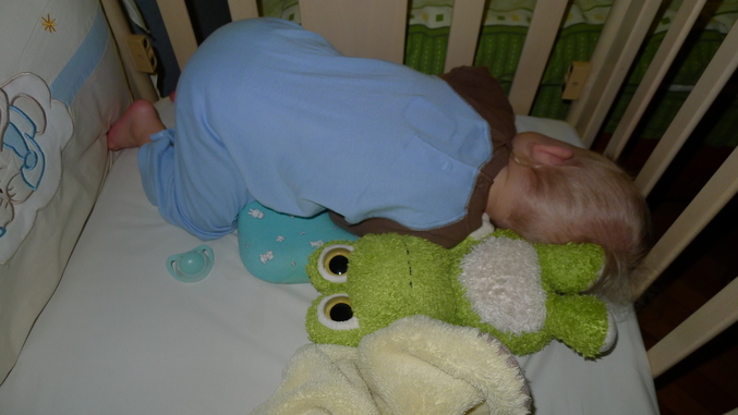 P.S.: легла спать, через пять минут жалобное скуление Артема. Пожалела моего зайку: положила его по-человечески, без всяких там подушек, накрыла пледом, лягушку в руки дала. А подушку убрала подальше......