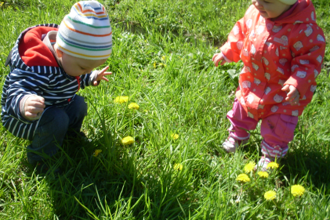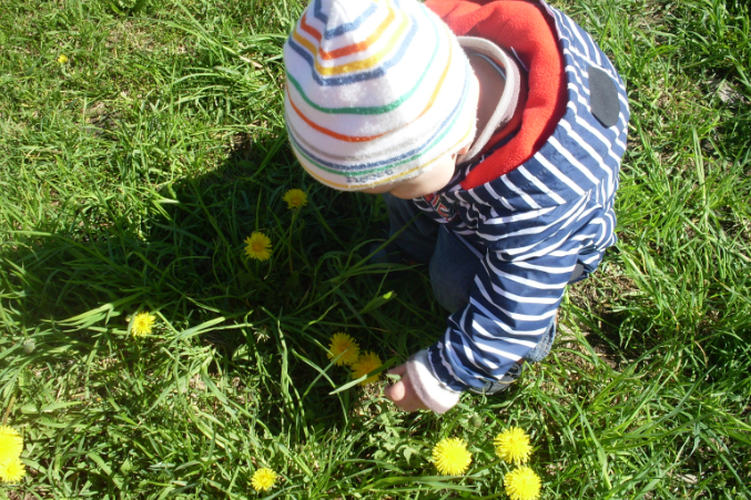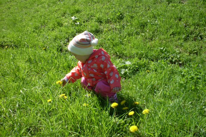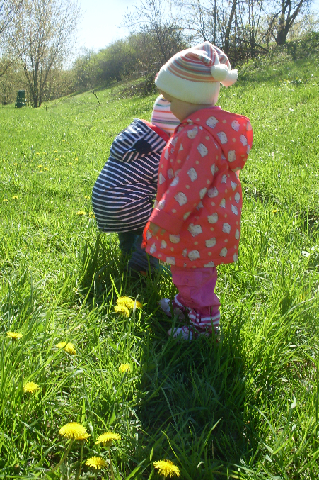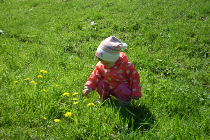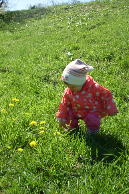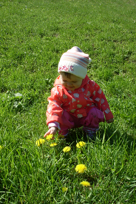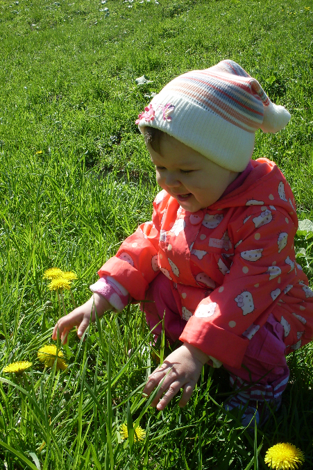 Ира первый раз увидела одуванчики, так смеялась жаль, что не было камеры!