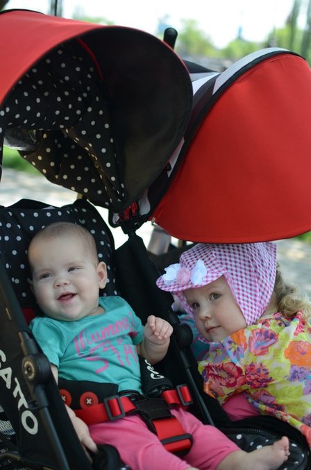 и второй большой для меня минус - это очень маленькие капюшоны((( которые абсолютно не защищают от солнца и от дождя. потому что ребенок ведь не будет сидеть прикованным к спинке, вечно крутится, вот голова и торчит. пришлось нам переделать это. Но сейчас коляски 2013 вышли с прекрасными козырьками, а мы поторопились купить и не уточнить этот момент, я думала они одинаковые..но мы переделали ее) мы пришили красного цвета молнию к капюшонам, и сделали козырьки внутри черные, снаружи красные. Несмотря на то, что мы с подругой старались выкроить их абсолютно идентичными, когда цепляешь их, они все равно на перекос( но я выбрала не красоту, а фукциональность. цепляем мы их только когда солнце прямо в глаз)