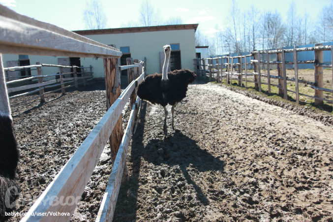 На обратном пути заехали на ферму страусов (и не только :)) ). Не удержусь от сравнения с подобной фермой в Темрюкском районе Краснодарсого края. Что понравилось там: нацеленность на детей, большее количество животных самых разных (отчет тут), что не понравилось здесь - это ужасно неудобный путь от парковки ко входу: по выложенной досками дорожке, хлипкому мостику и высокой лестнице, с детской коляской пройти нереально. :( Персонал очень профессиональный, безусловно подготовленный, сыпал энцеклопедической информацией, которую дети игнорировали, а взрослые (если не бегали за детьми, вежливо слушали). Самое большое удовольствие для деток погладить\покормить животных таки состоялось. :)