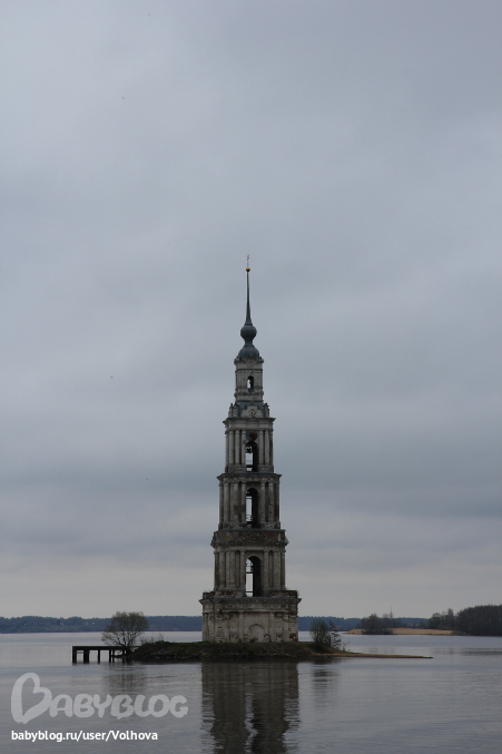 Калязин. В Калязин мы поехали на следующий день после отъезда Ани с семейством. Городок совсем небольшой, но с очень богатой и трагической историей. Помните Угличскую ГЭС? Так вот для ее строительства в 30-х годах прошлого(уже) века, был разрушен и затоплен исторический центр некогда красивого, купеческого города, все что осталось от него, это несколько домов, на одной стороне реки, да часть колокольни Никольского собора калязинско-Троицкого монастыря. Фантастическое советское раздолбайское отношение с истории России. Я смотрела фото города до затопления и видела город сейчас, сердце сжимается....Вот нашла книгу о городах на Волге, затопленных при стороительстве каскада водохранилищ: Ерохин В.И "Города под водой".