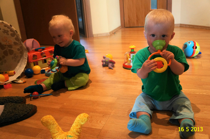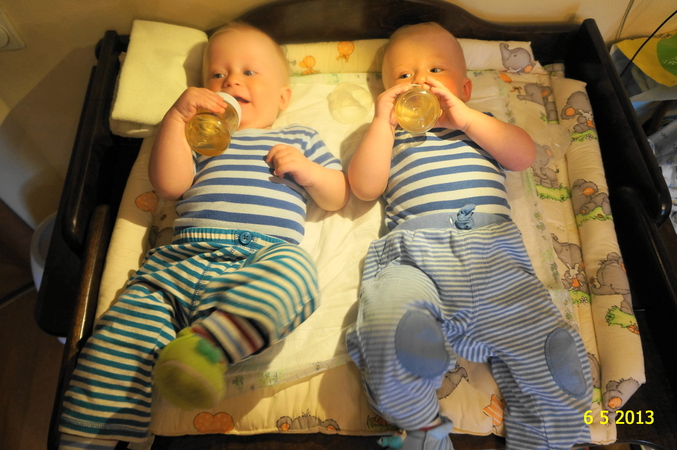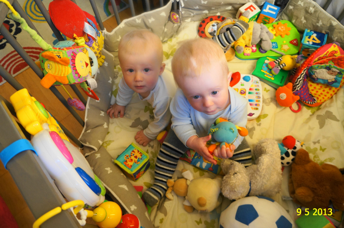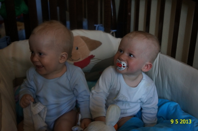 Ребятки ростут не по дням, а по часам)) с ними становится всё интереснее и интереснее, появляется отдача)) Умеем играть в ладушки, махать ручкой "пока-пока", Ваня умеет целоваться))) подползает открывает рот и давай слюнявить губы жертвы)))) Миха умеет еще показывать какой он большой)) задирает руки вверх и расплывает в улыбке))