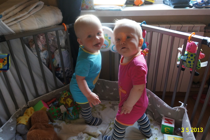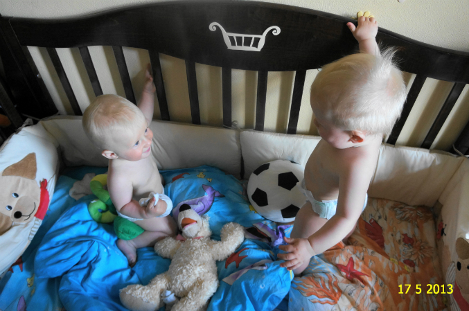 Только проснулись)) запустили в одну кроватку, побеситься))