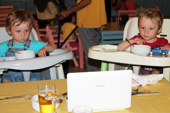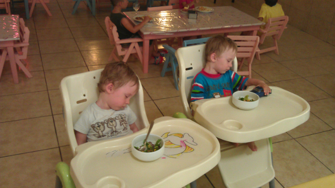 Мальчишки офигевали от шума и суматохи. Мульты на общей плазме, которая в детской зоне ресторана, их не привлекали. Выручал ноут со привычными мультами. На завтрак кушали с удовольствием паровой амлет и сухие завтраки. Всегда было 2 вида каши (манка и овсянка), но парням она не очень. На обед всегда был суп-пюре из цветной капусты, брокколи и прочих полезностей. На ужин макароны в основном.