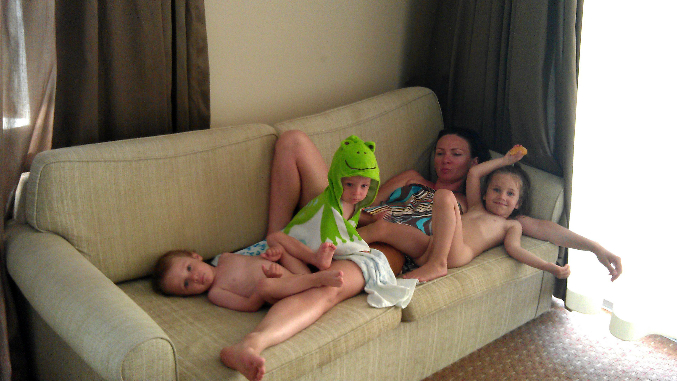 Мальчишки в хамаме сразу начали скользить на мокром полу и падать. До 3-х лет нет смысла их туда тащить. Разве что совсем пассивных или крайне послушных. )))))) А Веронике понравилось! Она и лежала на камне и бегала за водичкой и поливала нас с Серегой. Прямо банщик настоящий. )))))))