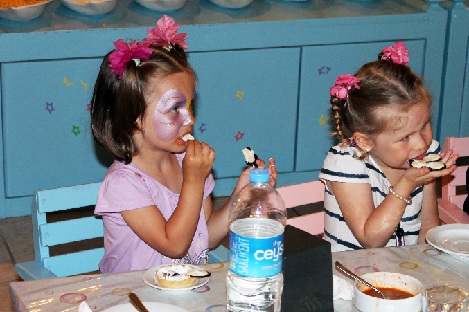 В ресторане отдельный детский и диетический стол. Не богатый, конечно, но накормить детей любого возраста всегда есть чем. Сложнее с напитками. Молоко раздобыть можно было всегда. Утром натуральный свежий компот. А вот на обед только химические соки. Чай/кофе/пиво/вино мы пока не употребляем ))) Из фруктов всегда были: яблоки, абрикосы, апельсины, грейпы, мушмула, маленькие бананы, ещё какой-то зеленый местный фрукт... Почти каждый день арбузы и дыни. Чуть реже - клубника.