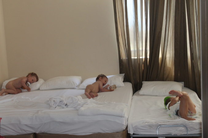 Укладывать спать малышей не приходилось. Просто перекладывали уже спящих из коляски. Вероника конечно позиций не сдавала. Все по полной программе: и сказку, и полежать, и погладить, и помассировать... Вообще ребенок загадочный. На мини-диско и в детский клуб затащить её невозможно... Висит на нас и все тут...