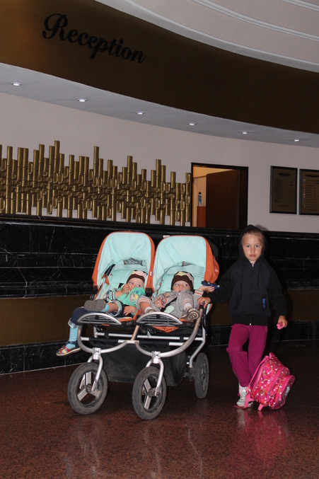 В нашем корпусе, кстати, тоже был лифт. Хоть там всего 3 этажа. И мы совершенно чудесным образом вмещались туда на нашем Бамблерайде. Ну не устаю восхищаться этой наиудобнейшей коляской! Хотели взять трость, но не стали. И правильно сделали. В нашей же можно полноценно спать в горизонтальном положении и с полностью вытянутыми ногами! Что парни и делали ежедневно, пока родители клубились на пирсе, анимации, танцах...