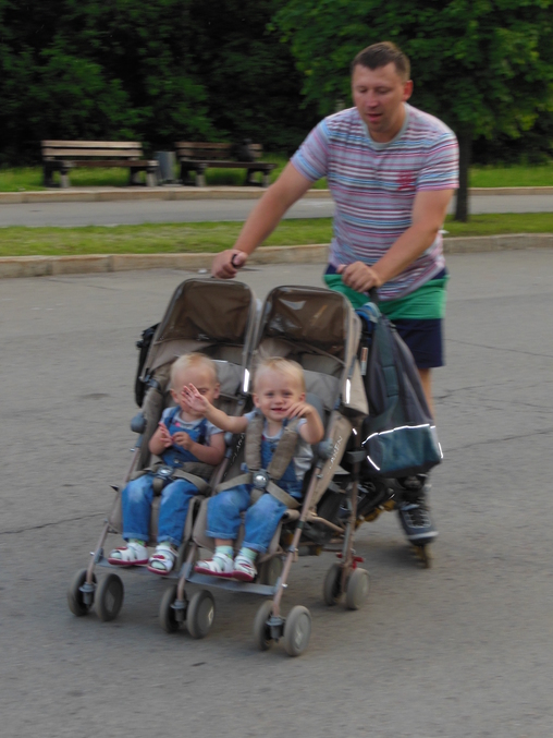 Да, девочки в коляске, им очень понравилось, когда их Андрей катал. А я в итоге просто пешком ходила, а моожно было вместе покататься ))))