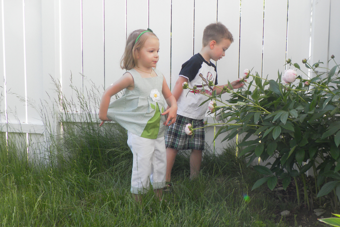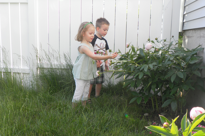 Позитив =)Пионы я очень люблю, вот решила малышей пофоткать около цветочков))) они понюхали, полюбовались немного и всё! позировать мне отказались... только вот поймала их в движении, как они бегали, СЧАСТЬЕ НАШЕ!!! Хорошо, когда на улице тепло, когда птички поют, когда дети хохчут, сердечки родные лепечут)))