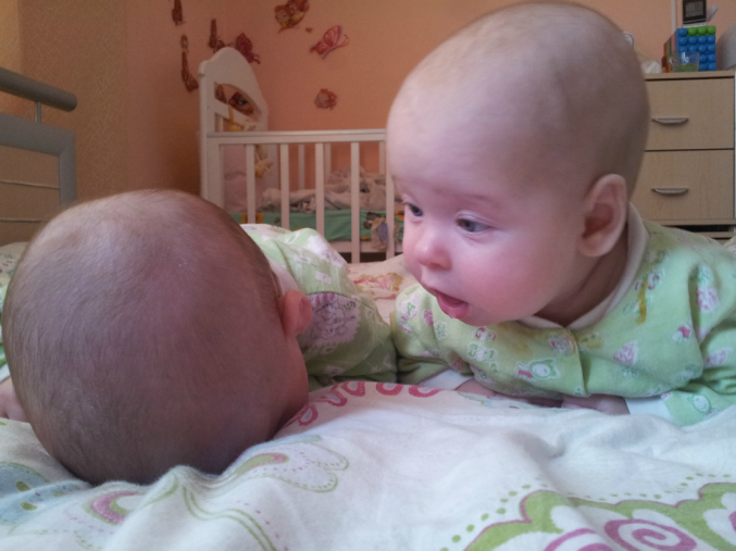 Двойняшки до 1 годаВ 4-4,5 месяца=)