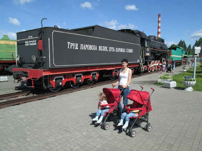 Дальше был Брест, только в крепости мы побыли недолго, практически сразу уехали посещать другую "достопримечательность" - Бресткую детскую областную больницу - в крепости папа не очень удачно вел за руку Асю, как результат - подвывих локтевого сустава. Но ничего страшного, все вправили и ребенок повеселел и потребовал кушать))) В различных кафе периодически слышали возгласы: "Проголодалась, кушать!", звучащие в два голоса))) Единственной проблемой было найти в Бресте подгузники, нашли только на рынке по совету продавца из детского магазина (огромное ей человеческое спасибо!). И еще мы были в Музее Железнодорожной техники, очень здорово!