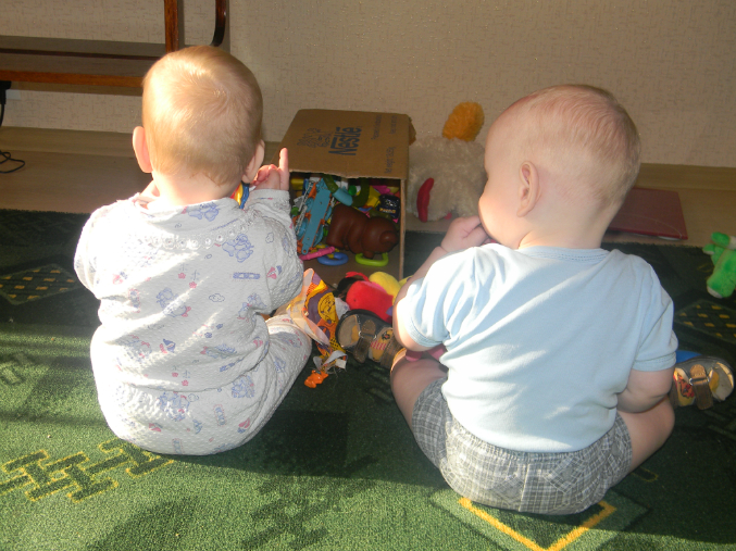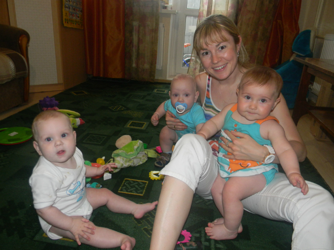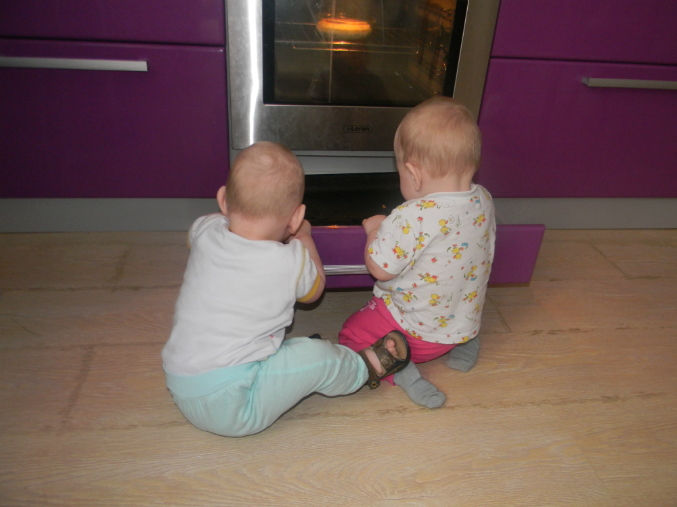 Двойняшки до 1 годаЭтот месяц пролетел быстрее,чем все остальные!За месяц многое изменилось!Начну с Лизоньки.Вес,рост не измеряла,но две недели назад была 8,2кг и 70см.Лизок всё старается,учится,я очень рада ее успехам!Научилась ползать на четвереньках,уже быстро ползает,всё за Тимом гонякает она))Встает на ножки у опоры и потихоньку шагает вдоль опоры.Она очень осторожная,трусишка маленькая))Играет в ладушки,лапочет ма-ма,па-па,ба-ба,ээх,оох))Два зубика,но третий и четвертый ни как не проклюнутся,их прям видно внизу,но чего то не хотят пока вылезти))Любит музыкальные игрушки,сразу хлопает в ладошки и радуется,при виде себя в зеркале готова слезть с рук и обняться со своим изображением))Поменялась местами с Тимоном,если раньше он нам истерики закатывал,то сейчас Тим спокойно играется,а она может ныть,ругаться))Тимоха две недели назад весил 9кг и 70см.Очень быстро ползает на четвереньках,встает у опоры,ходит быстро вдоль опоры,держится за одну руку и стоит,пару раз отпускал ручки и просто стоял,но потом садился на попу)Вообще очень шустрый паренек,улыбашка такой,всем всегда улыбается и стесняется,глазки строит)))Говорит много на своем тарабарском,утром просыпается и сидит играется при этом нашептывает что то,слоги даже не описать)))))Танцор еще тот,только музыка заиграет сразу впляс))Особенно под Gangnam Style,это что то))))Два зуба по-прежнему у него. Кушаем мы смесь,овощи очень любим,мяско с овощами,фруктовые пюре редко,больше грызем их,сушки и сухари наше всё))Огурец пробовали,косточки куриные грызут)))Второй день кушаем овощной супчик,очень нравится им!Купим телятинку и буду готовить уже с мяском супчик.Вчера были у свекров,на столе стояла мисочка с адыгейским сыром,пока тут все внимание было старшим внукам,Лиза не растерялась-стыбзила кусок сыра и сидит наяривает))Понравился так,что когда забрали рев такой был)))Надо будет творожок им дать попробовать,может понравится.На улице любят глазеть по сторонам,отбирать друг у друга шапочки,соски(уже три штуки потеряли соски и одну панамку)))Любим топать на улице,всё норовят сесть и ползти)))Безумно любят Савика,прям лезут к нему,хохочат когда он дурачится)))Тимке вечно нужна именно та игруха,которая у Лизы,поэтому Лиза вечно ноет от него))Он может ползти к ней,сесть прям на нее и сидеть играть в таком положении,а Лиза орет)))Исследовали все уголки квартиры,падала на нас сушилка,полка с обувью,стульчик для кормления,застревали где только можно.Оккупировали кухонные ящики,ванную,коридор и стол компьютерный))Теперь строю баррикады возле компа))Вообще как стали ползать,сидеть и стоять мне стало легче!Они могут вдвоем играть долго,если Савик дома то вообще красота!Папу нашего выписали,теперь ездим гулять по паркам,благо погода приходит в себя))Савёнок выздоровел,за две недели его отсутствия он как то вырос,стал такой интересный!На счет садика пока ни чего не известно((За две недели пока я была одна с двойнятами я приучила их засыпать в 21-21.30(теперь вечернее время свободное)),просыпаются на покушать раз за ночь,дневной сон тоже наладила им;научилась сама с собой разговаривать в слух(а то одна ж была дома),ходить одна с ними в магазин(сажала их в корзину и нормуль)),похудела на 1кг