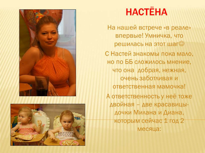 на слайде Анечки, я выпала в осадок))) 4!!!! детей, и так прекрасно выглядит. Начинаю верить.что цифра 4 волшебная:))))